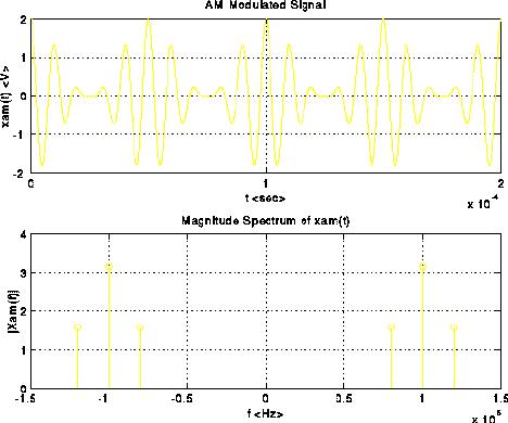 xam = (1 + cos(2*pi*fm*t)).*cos(2*pi*fc*t);