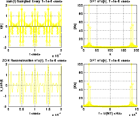 title('ZOH Reconstruction of x(t), T=1e-6 ');
