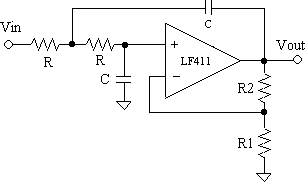 f0 = 10 kHz. Set the gain for a Butterworth frequency response. This circuit