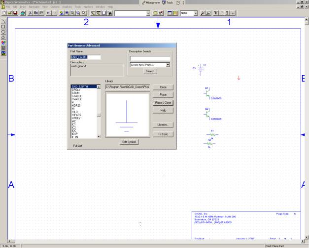 2)Click on Draw -> Place Part (Crtl-P) or the binocular icon